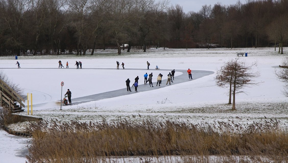 Op deze wielen, ontstaan door overstromingen van de voormalige Middelzee en door vervening, kan 's winters heerlijk worden geschaatst. Op de ondiepe plassen van De Kleine Wielen kan in het begin van een ijsperiode al vrij snel de familietoertocht van 6, 12, 18 of 24 km worden gehouden. De foto’s zijn van deze tocht die in 2012 voor het laatst is gehouden (foto’s: www.groenesterleeuwarden.nl ).